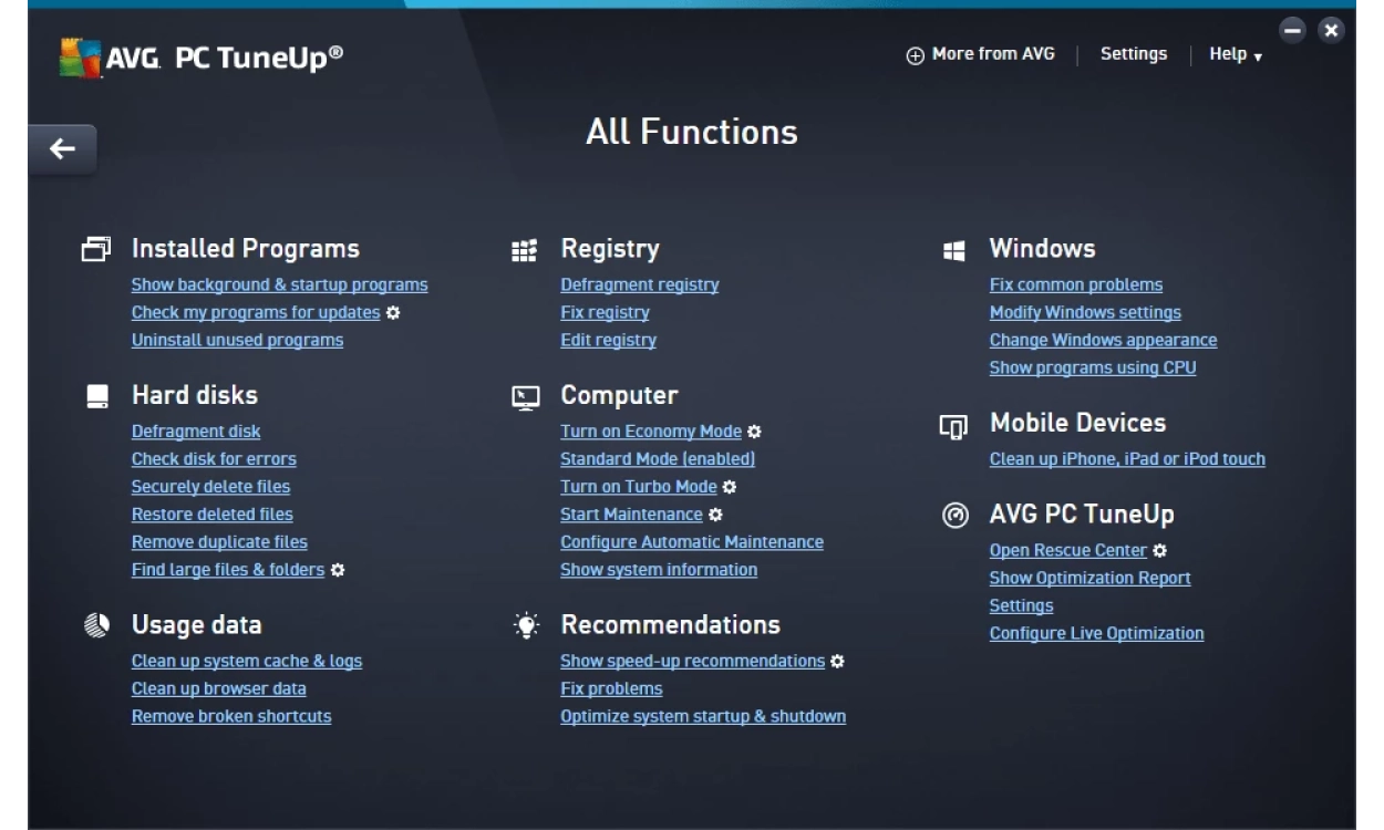 Familiar, but also enhanced features of AVG TuneUp