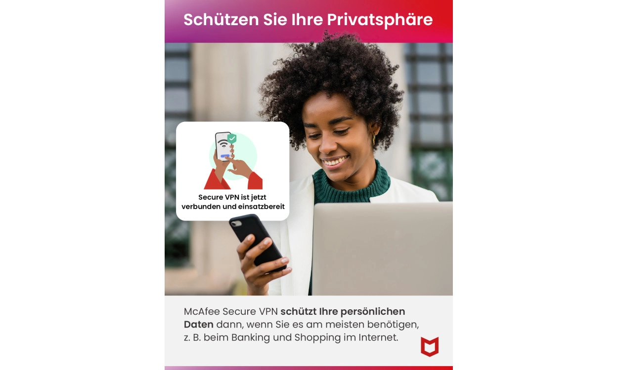 Alle Total Protection-Produkte enthalten das VPN von McAfee. Mit dem VPN können Sie sicher und anonym auf das Internet zugreifen, auf blockierte Inhalte zugreifen und Ihre Online-Privatsphäre schützen. Möchten Sie mehr über dieses VPN erfahren? Dann lesen Sie den Blog-Artikel: McAfee VPN.