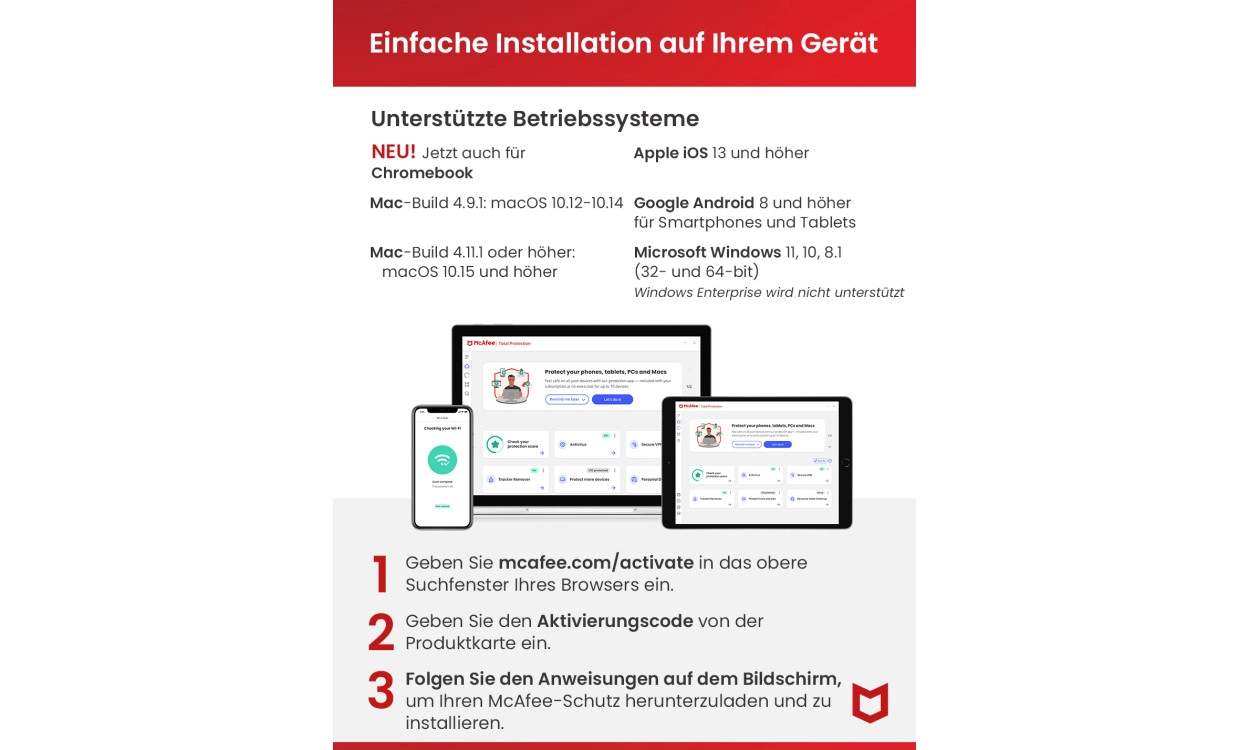 Wir arbeiten seit Jahren mit McAfee zusammen. Daraus hat sich eine Partnerschaft entwickelt, auf die wir stolz sind. Eine solche Partnerschaft hat viele Vorteile, nicht nur für uns, sondern vor allem für Sie als Kunde. Niedrigere Preise, tolle Angebote und ein perfekter Service, der Sie bei der Installation und Aktivierung unterstützt.