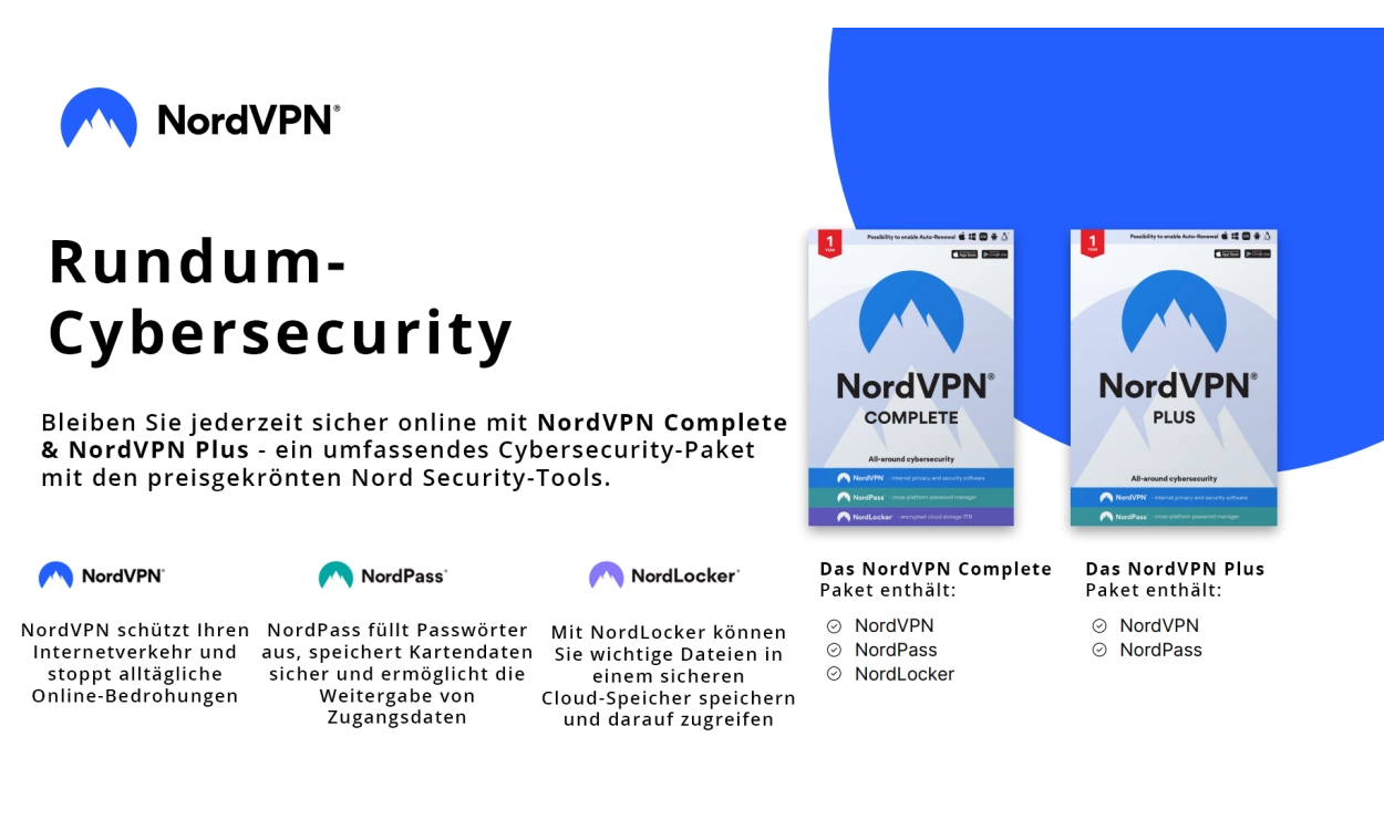 Sie möchten also sorglos im Internet surfen, Ihre Dateien sicher aufbewahren und überall darauf zugreifen können? Dann ist NordVPN Komplett die perfekte Lösung für Sie. Sie können bis zu 10 Geräte mit der besten Online-Sicherheit versorgen.
