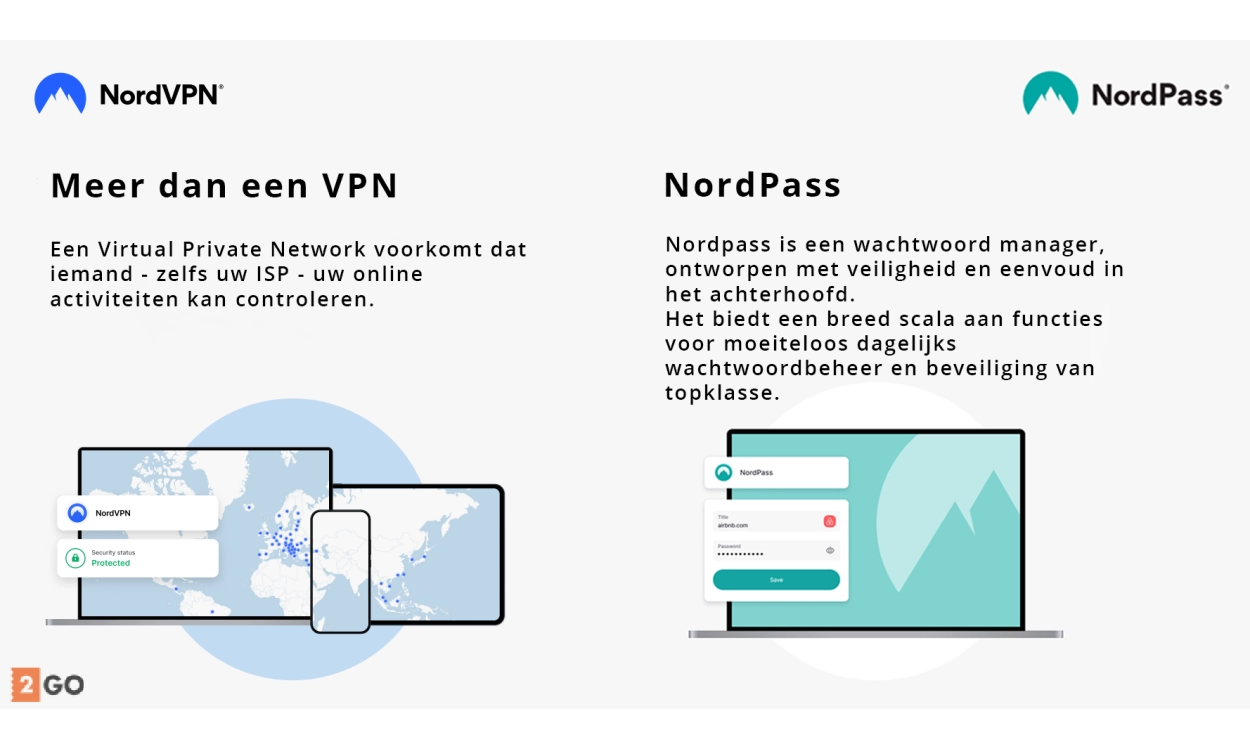 • NordPass: onthoudt en slaat jouw wachtwoorden op in een veilige kluis. Daarnaast zorgt de data breach scanner ervoor dat je op de hoogte wordt gehouden als je wachtwoorden, e-mailadressen of creditcardgegevens in een datalek opduiken en hoe dat dan gebeurd is.