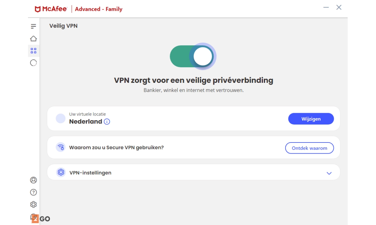- Secure VPN: Versleutelt en beveiligt jouw internetverbinding voor volledige online anonimiteit, wat je ook doet.