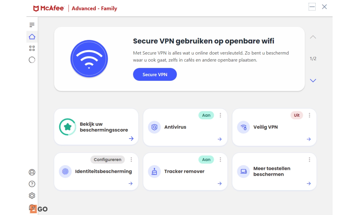 Naast de standaard antivirusbescherming, biedt McAfee+ Advanced Family ook een veilige VPN, wachtwoordbeheer en identiteitsbescherming. Mocht je te maken krijgen met identiteitsdiefstal, dan helpt dit pakket je met identiteitsherstel. Bovendien biedt het ondersteuning bij het herstel van verloren of gestolen bankpas- en kaartgegevens, zodat je snel kunt handelen in noodsituaties.