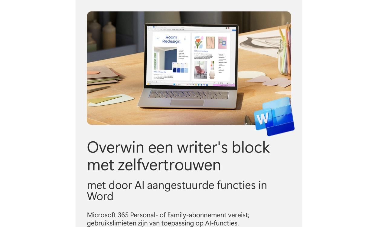 Copilot in Microsoft 365 maakt jouw werk eenvoudiger. Perfect voor taken zoals schrijven, samenvatten en ondersteuning bij het gebruik van de Microsoft 365 programma's. Meer gemak en minder tijdverlies! Ook met Microsoft 365 Personal en Family kun je nu gebruik maken van Copilot!