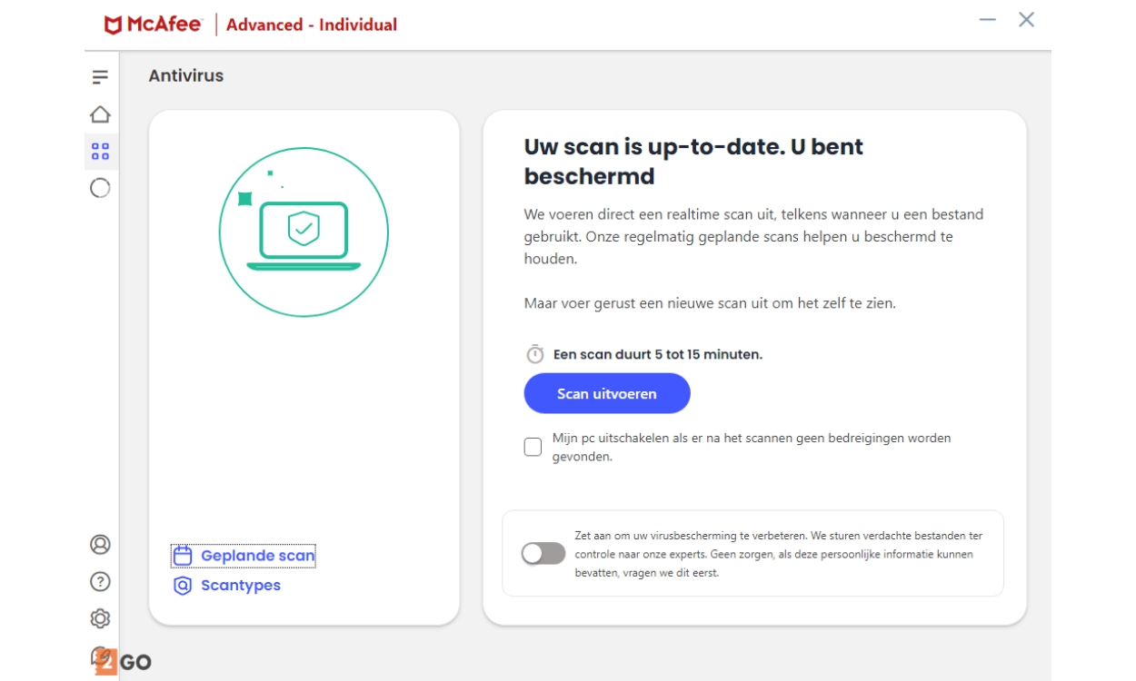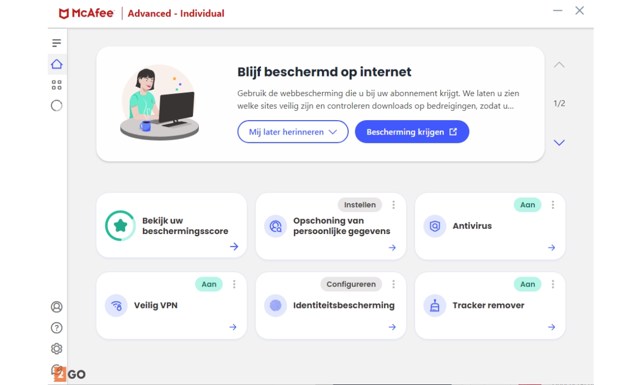 Naast de standaard antivirusbescherming, biedt McAfee+ Advanced Individual ook een veilige VPN, wachtwoordbeheer en identiteitsbescherming.
